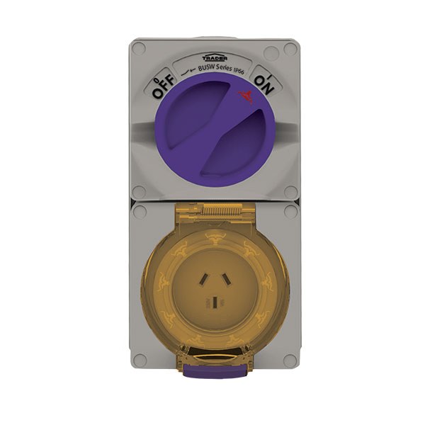 - Buffalo offers an extensive range of IP66 rated Combination Switched Sockets that are available in three-pin 10A to 32A four-pin 10A to 50A and five-pin 10A to 50A designs. Phase links are factory fitted between switches and sockets. Small Single phase Flat pin - 10A to 20A Size 1 Single & Three Phase - 10A- 20A Size 2 Single & Three Phase - 32A - 50A Heavy Duty terminals are standard on all products with Double Pole switching option as standard on 3 pin products. The combination switch handle has two padlocking facilities (Oval Shape 11 x 9mm) so equipment can be safely isolated. Switch is provided with LED fitment option (not supplied). Combination sockets feature a clear dustproof & hoseproof flap allowing simple viewing of sockets. The flap is also provided with a reliable spring-tensioned latch to keep dust & liquids out.