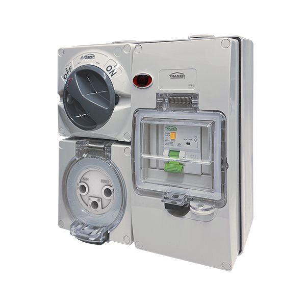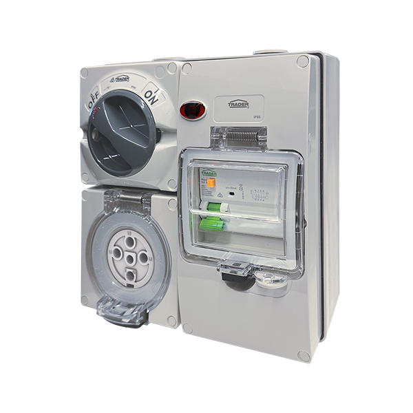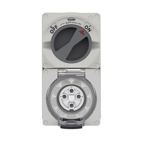 - Buffalo offers an extensive range of IP66 rated Combination Switched Sockets that are available in three-pin 10A to 32A, four-pin 10A to 50A and five-pin 10A to 50A designs. Phase links are factory fitted between switches and sockets. Small Single phase Flat pin - 10A to 20A Size 1 Single & Three Phase - 10A- 20A Size 2 Single & Three Phase - 32A - 50A Heavy Duty terminals are standard on all products with Double Pole switching option as standard on 3 pin products. The combination switch handle has two padlocking facilities (Oval Shape 11 x 9mm) so equipment can be safely isolated. Switch is provided with LED fitment option (not supplied). Combination sockets feature a clear dustproof & hoseproof flap allowing simple viewing of sockets. The flap is also provided with a reliable spring-tensioned latch to keep dust & liquids out. Part bag contains twin screwed connector.-