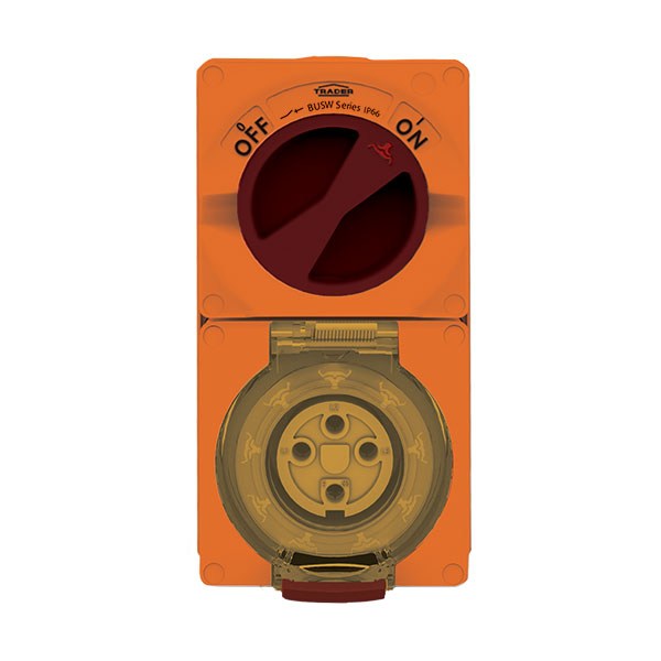 - Buffalo offers an extensive range of IP66 rated Combination Switched Sockets that are available in three-pin 10A to 32A, four-pin 10A to 50A and five-pin 10A to 50A designs. Phase links are factory fitted between switches and sockets. Small Single phase Flat pin - 10A to 20A Size 1 Single & Three Phase - 10A- 20A Size 2 Single & Three Phase - 32A - 50A Heavy Duty terminals are standard on all products with Double Pole switching option as standard on 3 pin products. The combination switch handle has two padlocking facilities (Oval Shape 11 x 9mm) so equipment can be safely isolated. Switch is provided with LED fitment option (not supplied). Combination sockets feature a clear dustproof & hoseproof flap allowing simple viewing of sockets. The flap is also provided with a reliable spring-tensioned latch to keep dust & liquids out.