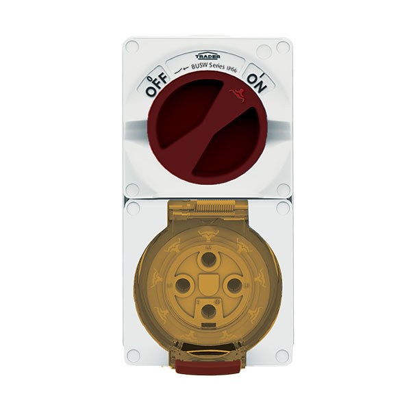 - Buffalo offers an extensive range of IP66 rated Combination Switched Sockets that are available in three-pin 10A to 32A, four-pin 10A to 50A and five-pin 10A to 50A designs. Phase links are factory fitted between switches and sockets. Small Single phase Flat pin - 10A to 20A Size 1 Single & Three Phase - 10A- 20A Size 2 Single & Three Phase - 32A - 50A Heavy Duty terminals are standard on all products with Double Pole switching option as standard on 3 pin products. The combination switch handle has two padlocking facilities (Oval Shape 11 x 9mm) so equipment can be safely isolated. Switch is provided with LED fitment option (not supplied). Combination sockets feature a clear dustproof & hoseproof flap allowing simple viewing of sockets. The flap is also provided with a reliable spring-tensioned latch to keep dust & liquids out.