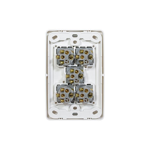 - Uses brass tunnel terminals that have the screws backed out for easier installation of cabling - Switches are two way with looping terminal and suit 3 x 1.5mm2 cabling - 4.1mm terminal bores