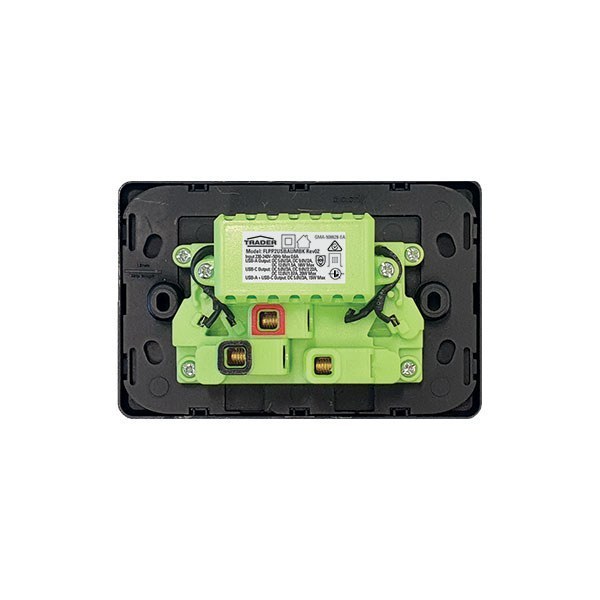 - The USB circuit is integrated with the socket outlet and connected internally so only one set of terminals are required for the electrician to wire the device.