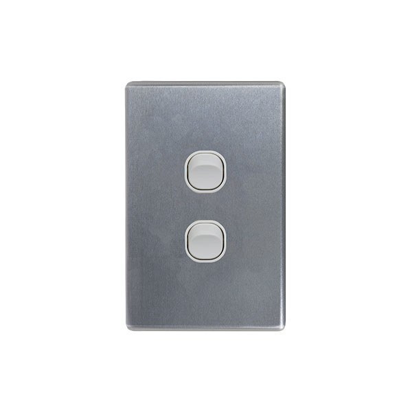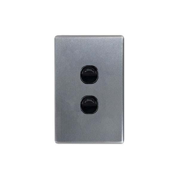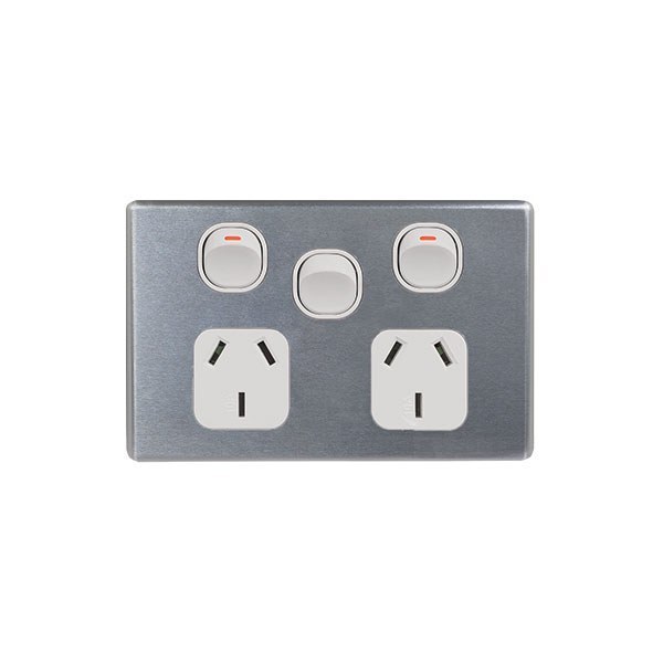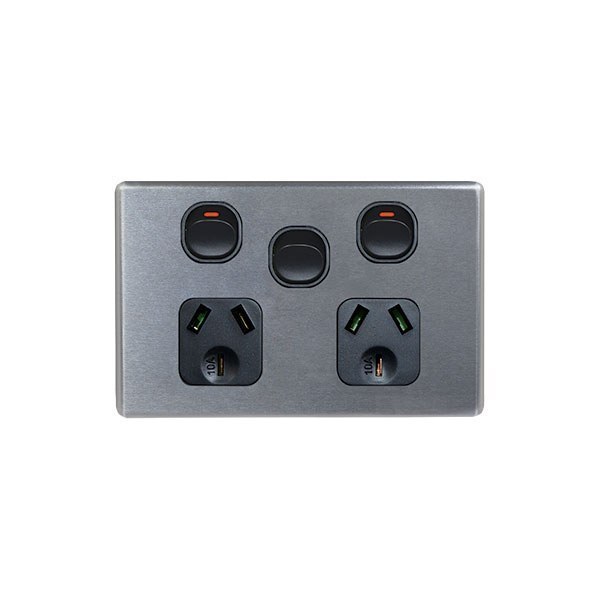 Power Point Switched 2 Gang With Extra Switch Cover Brushed Aluminium