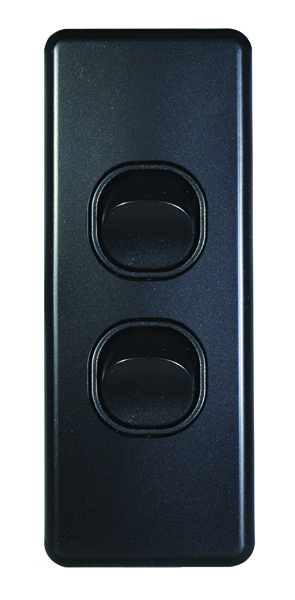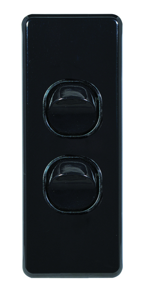Switch Horizontal 2 Gang Slim 10AX 16A 250V Black