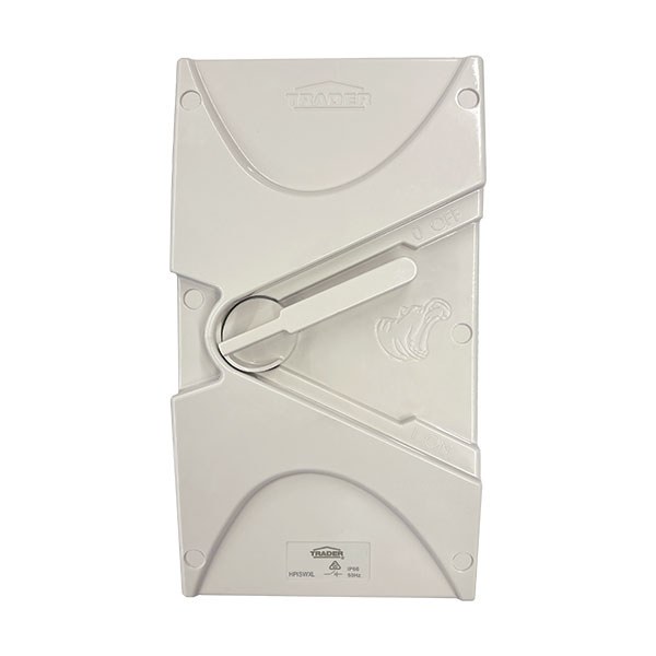 - Note: The HPISW120 and (BK) models are a base mounted single pole Isolators that performs in accordance with AS/NZS 3133 with motor rating of M100, this model doesn’t use the corner mount screw system as the others and requires the base to be aligned in correct orientation when installing.