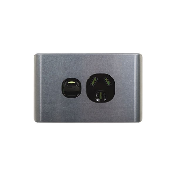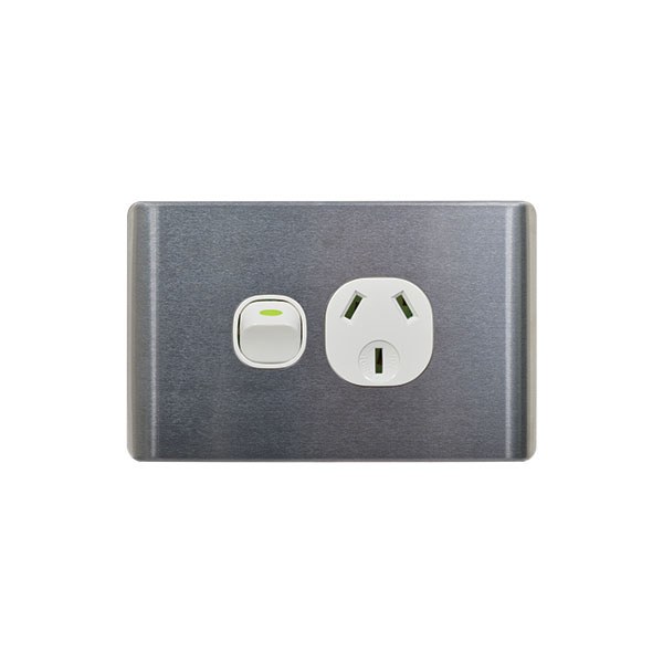 Power Point Switched 1 Gang Cover Brushed Aluminium