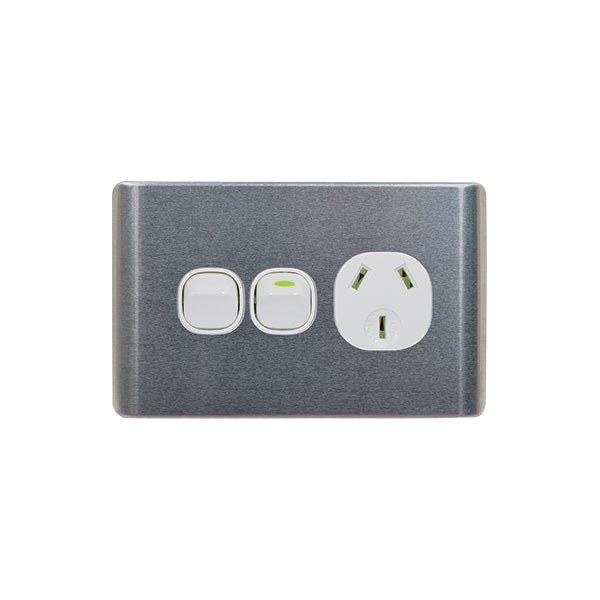 Power Point Switched 1 Gang with Extra Switch Cover Brushed Aluminium