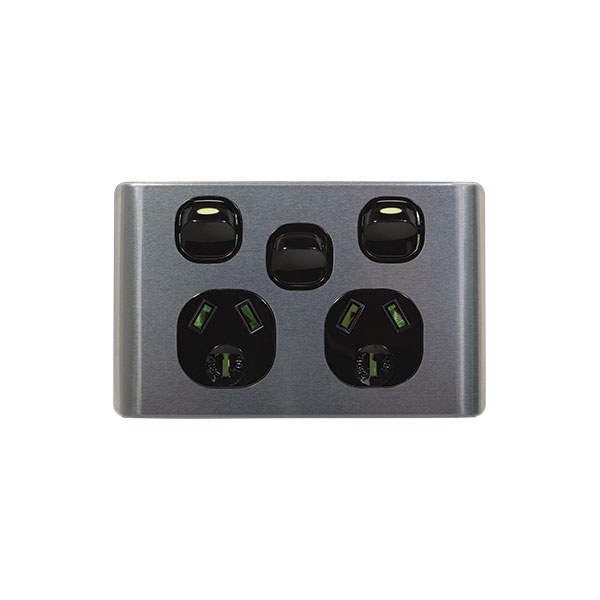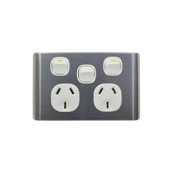 Power Point Switched 2 Gang with Extra Switch Cover Brushed Aluminium