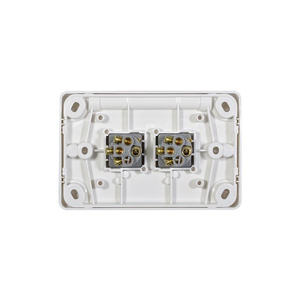 - Uses brass tunnel terminals that have the screws backed out for easier installation of cabling. Switches are two way with looping terminal and suit 4 x 1.5mm2 cabling with 4.1 bore.