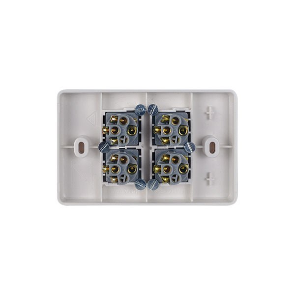 - Uses brass tunnel terminals that have the screws backed out for easier installation of cabling. Switches are two way with looping terminal and suit 4 x 1.5mm2 cabling with 4.1 bore