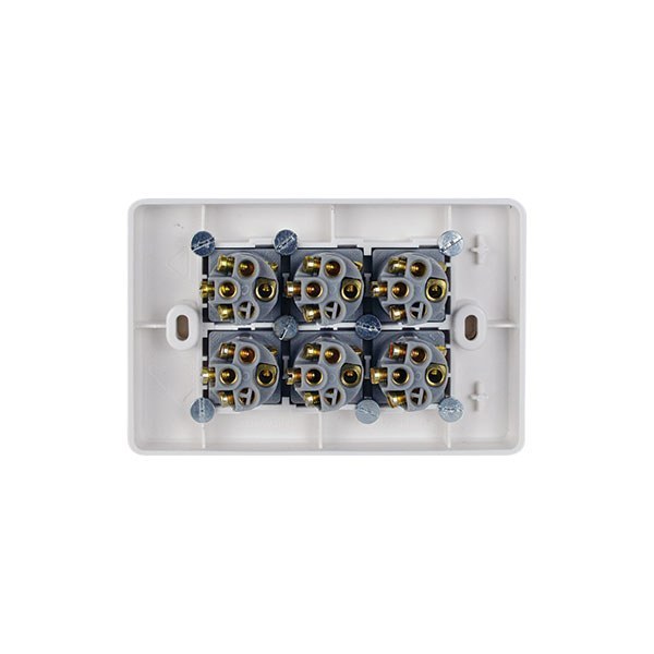 • Uses brass tunnel terminals that have the screws backed out for easier installation of cabling. Switches are two way with looping terminal and suit 4 x 1.5mm2 cabling with 4.1 bore