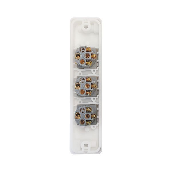 - Uses brass tunnel terminals that have the screws backed out for easier installation of cabling. Switches are two way with looping terminal and suit 4 x 1.5mm2 cabling with 4.1 bore.